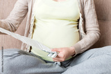 Pregnant Lady Reading Instruction For Prescribed Pills , healthcare concept, medicine during pregnancy