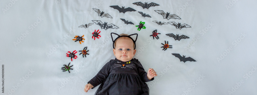 Little girl in a cat costume. Halloween idea for celebrating Halloween