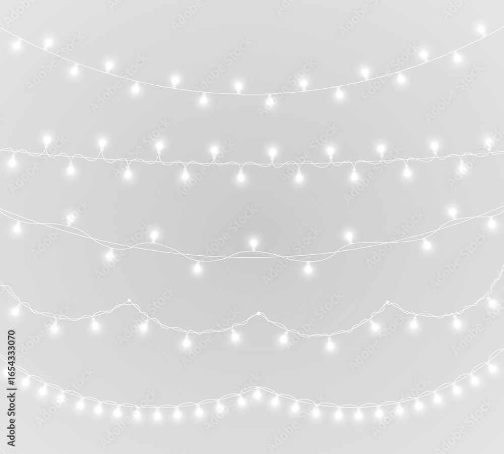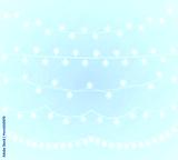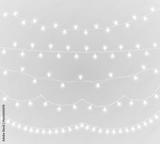 PNG gold garland and shiny string lights on transparent background for winter holiday banner with festive ribbon decoration and abstract illustration in green blue and bright colours