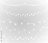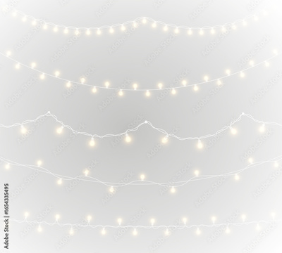PNG transparent holiday garland with glowing string lights and gold ribbon on white background perfect for festive celebration banner or marketing card in bright colourful design
