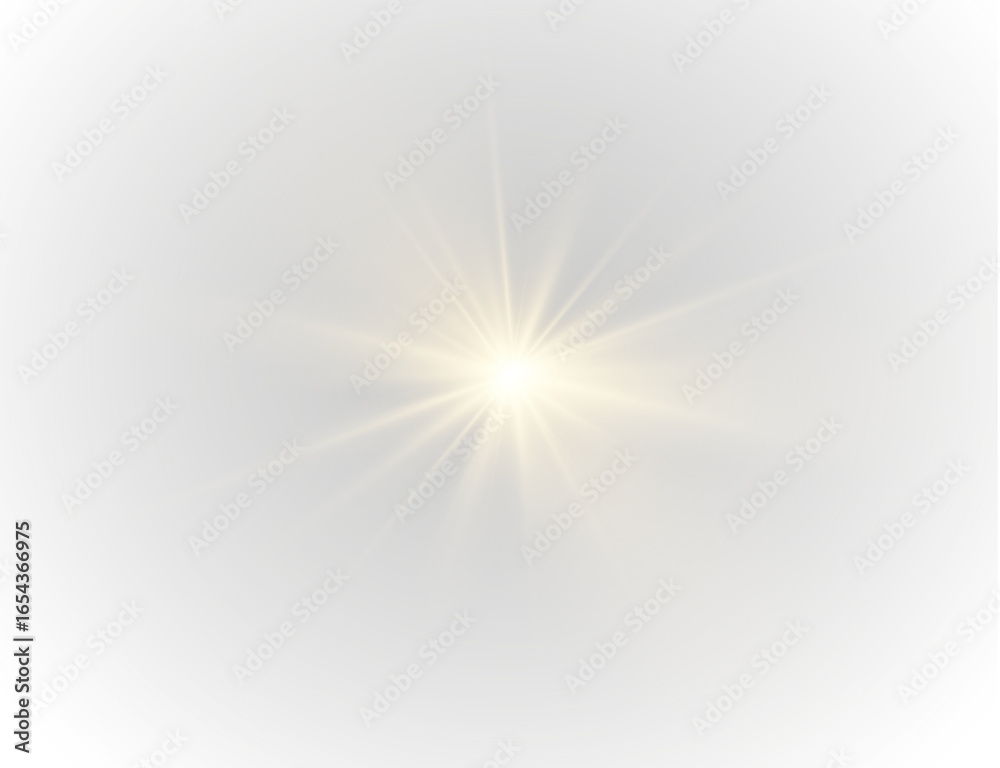PNG radiant sun with magical flash and gold glow effect featuring explosion spark, violet lens flare, isolated spot, and science-inspired rays for background or object highlight design