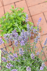 Nasse und saftig grüne Pfefferminzpflanze und Lavendel aus biologischem Anbau - Marokkanische Minze