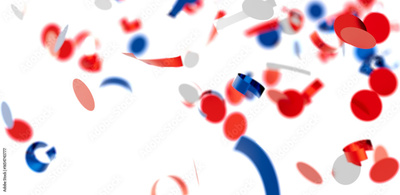 Abstract festive background with red, blue, white confetti. Perfect for celebrations, parties, and events.
