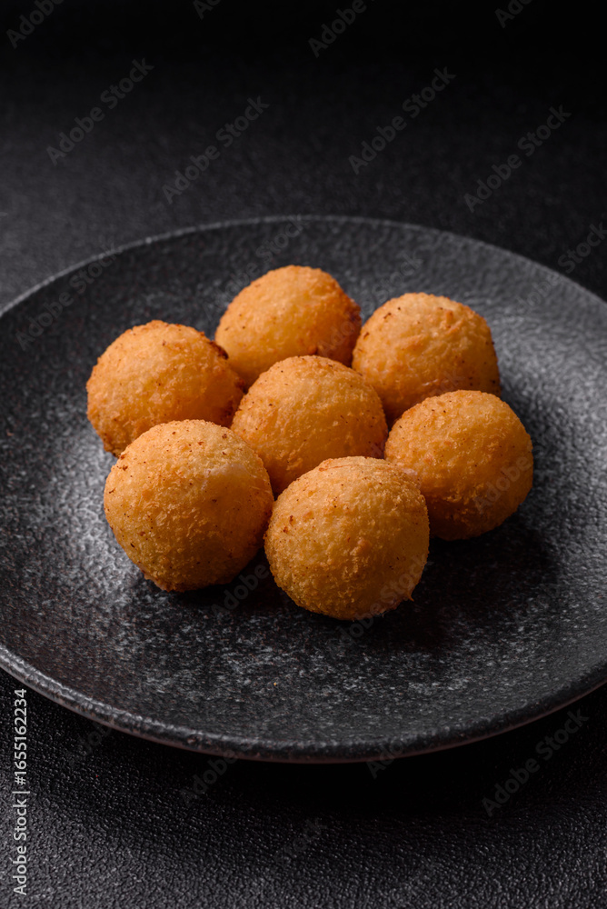 Cheese balls, croquettes or arancini with potatoes or rice. Cheese balls