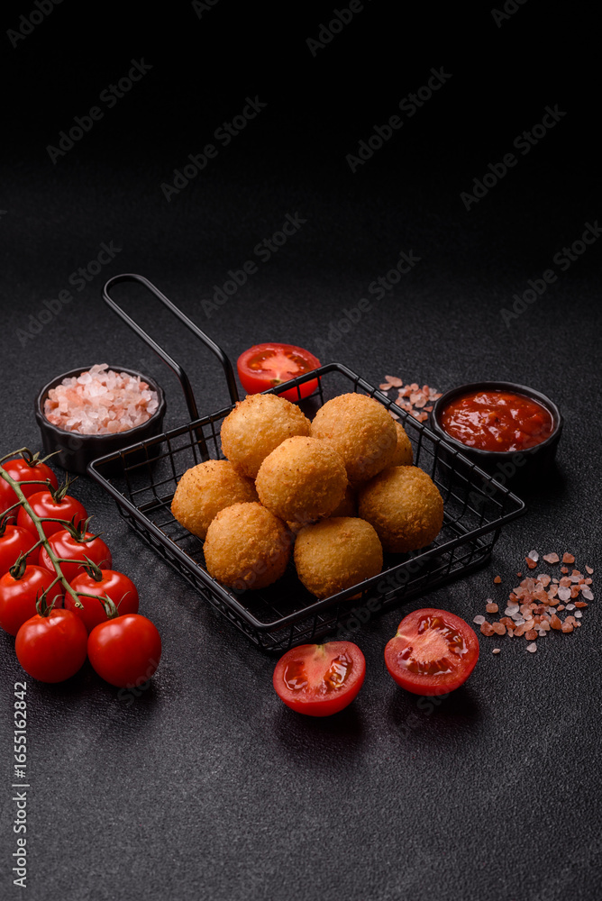 Cheese balls, croquettes or arancini with potatoes or rice. Cheese balls