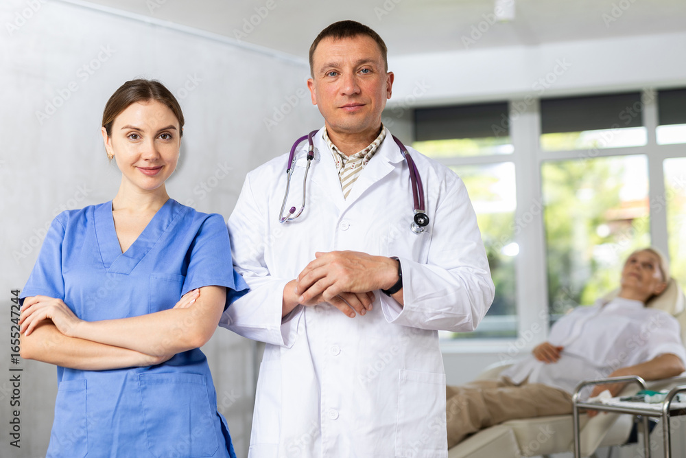 Doctors or surgers with paper board or patient folder (OPD) looking at camera.