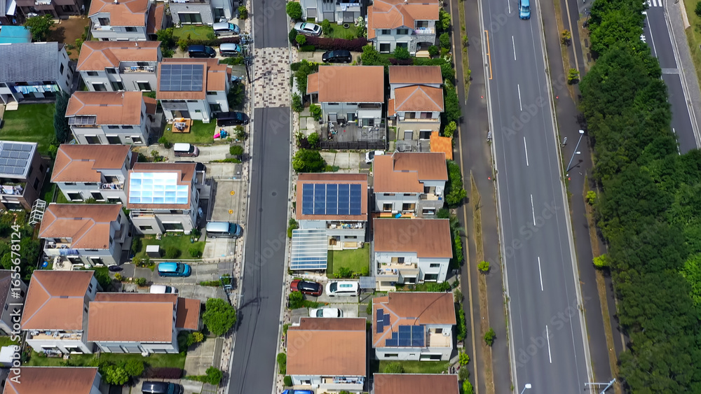 住宅地の真俯瞰ドローン空撮