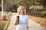 Most Beautiful Mature Woman Smiling While Walking In A Park