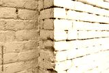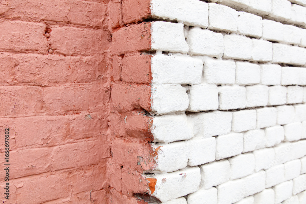 A white and red brick wall with a white line painted on it