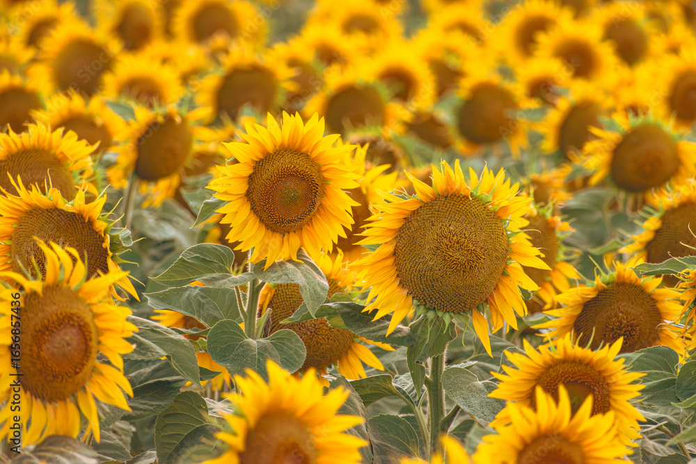 Close up of golden yellow sunflowers