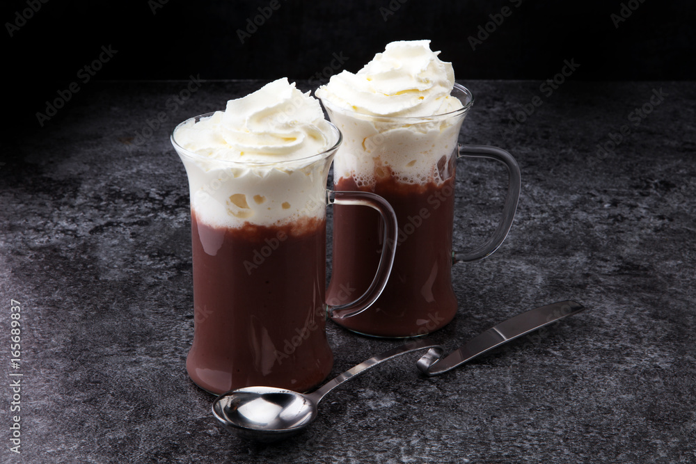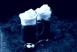 coffee chocolate smoothie with coconut whipped cream. toning, iced coffee