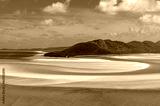 Spectacular view of picturesque Whitsunday island beach and lagoon