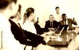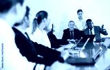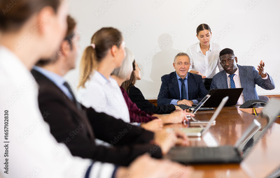 Manager introduces new company executives to colleagues in meeting room