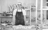 Positive young guy standing in bake house ready to start baking