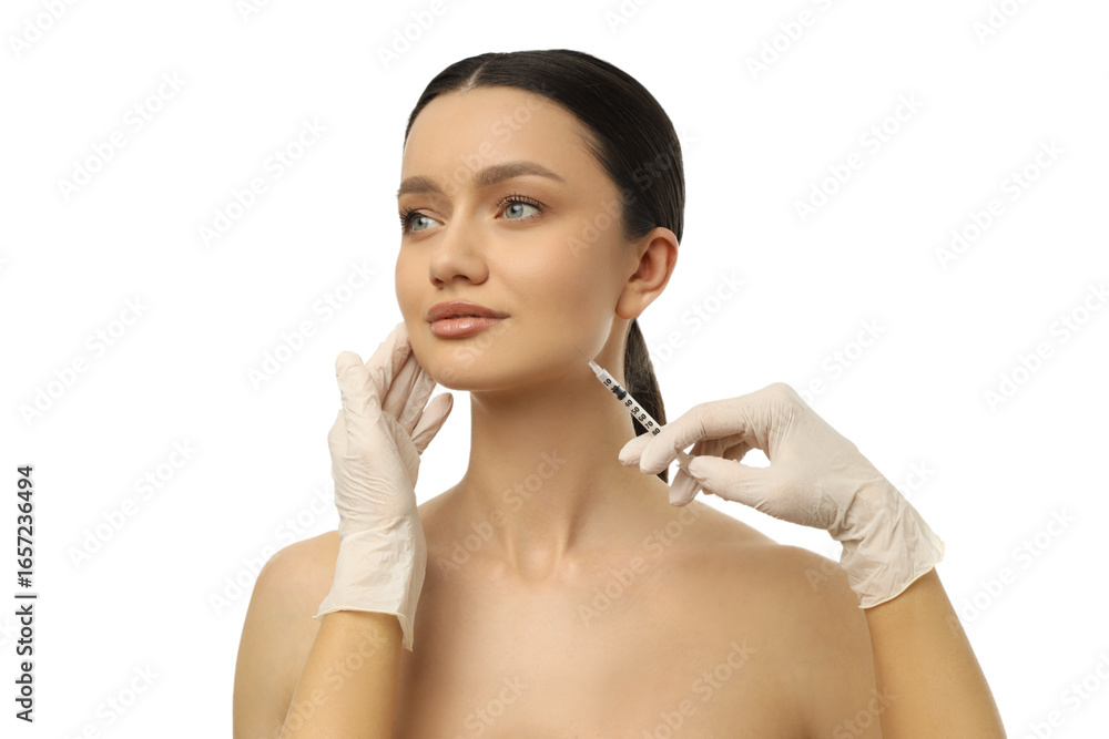 Facial cosmetic treatment in progress, isolated on white, PNG
