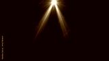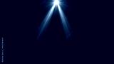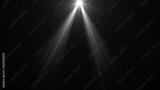 Stage lights. Several projectors in the dark. Purple spotlight strike through the darkness