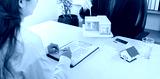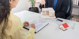 Real Estate Consultation. Agent discussing property model and financial options with client.