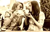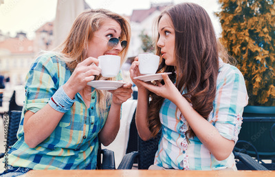 Two women relaxing after shopping in a cafe. Consumerism, lifestyle concept