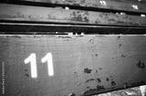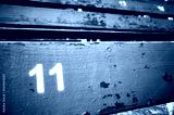 Number eleven painted on an old wooden seat, conceptual picture with copy space on the right.