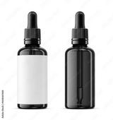 30ml blue glass dropper bottles with blank label isolated. 3D rendering illustration. Transparent PNG image.