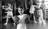 Atmosphere of sports and health, child enjoys boxing, poses in studio after training. Childs active hobby, boxing. Boy posing during training in boxing gloves.....