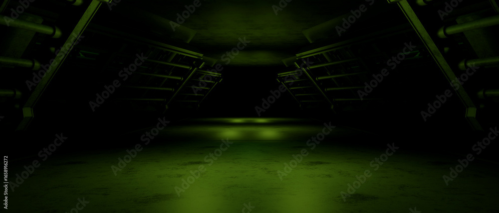 Futuristic Green Corridor Sci-Fi Tunnel Background
