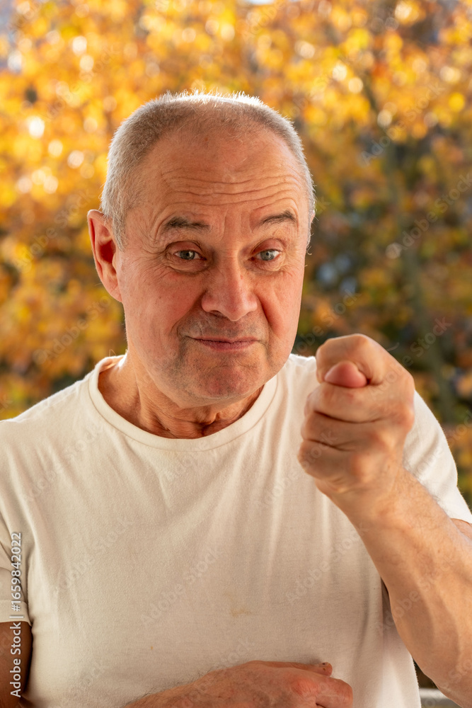 gesture fig, Angry Aggressive Stressed senior man, visual person experiencing intense frustration, Confrontation and conflict, stress, life pressures, Mental health issues, Workplace frustration
