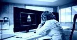 Senior Analyst Woman Worries About Cyber Ransomware Attack