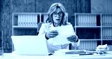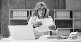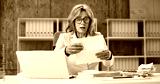 Senior Accountant Reviewing Tax Invoices, Shocked