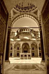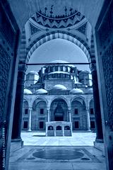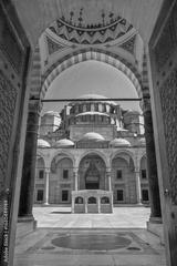 View over the Suleymaniye Mosque through its gate in Istanbul, Turkey