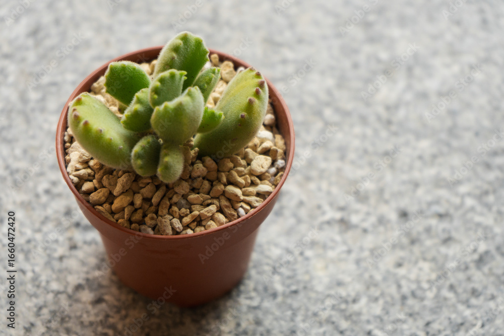 Young succulent plant Cotyledon tomentosa variegated grown in a pot