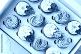 Assortment of pistachio flavor Cupcakes in a gift box on white background