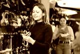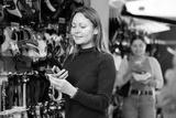 Smiling young female customer scanning barcode on colorful dog collar with smartphone while shopping in pet store, paying for item using mobile app