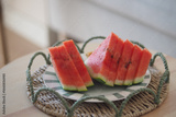 Slices of fresh watermelon arranged on a plate