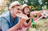 Couple enjoying picnic together. Love and tenderness, dating, romance, lifestyle concept