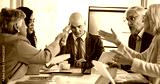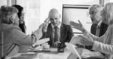 Headache, stress and businessman in meeting with team, chaos or argument for poor investment. Frustrated people, group and discussion in office for financial crisis, bankruptcy or overwhelmed manager