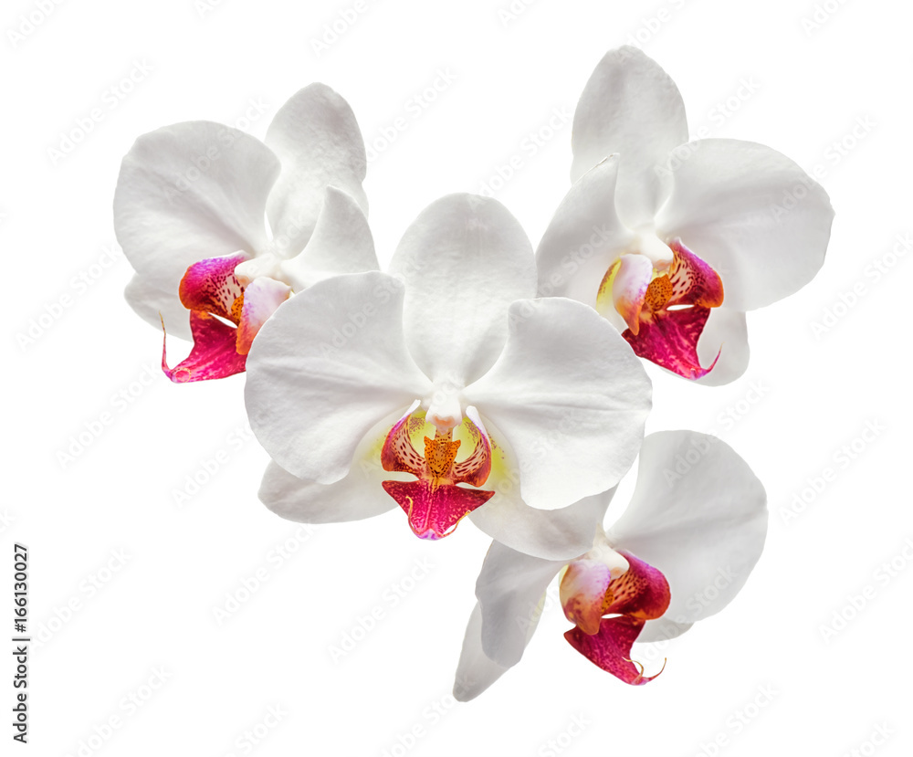 blooming beautiful white with red orchid, phalaenopsis isolated on white background, close up