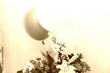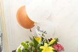 Decorative balloons and vibrant flowers create a festive atmosphere at a bridal shower. The scene captures excitement and joy as friends gather to honor the bride-to-be in a charming setting.