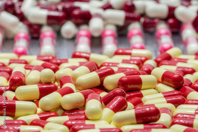 Colorful of antibiotic capsules pills , drug resistance