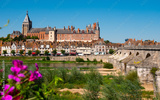 View of Gien with the castle and the old bridge across the Loire river, France
