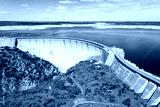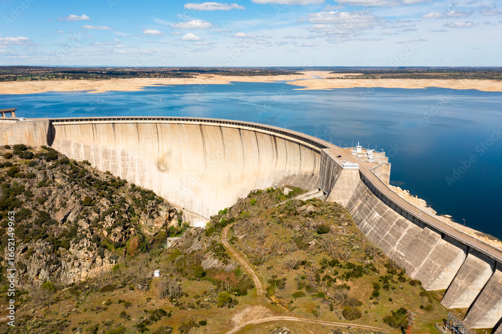 Aerial photo of Almendra Dam, arch dam near Almendra village, province of Salamanca, Spain.