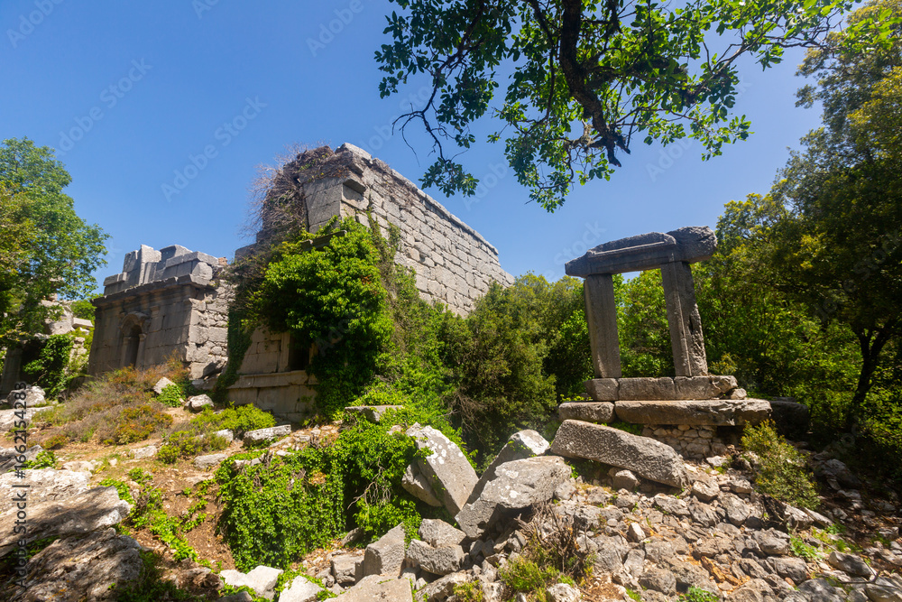 Ruined gymnasium and baths building in Termessos. Ruined ancient city in Antalya province, Turkey.