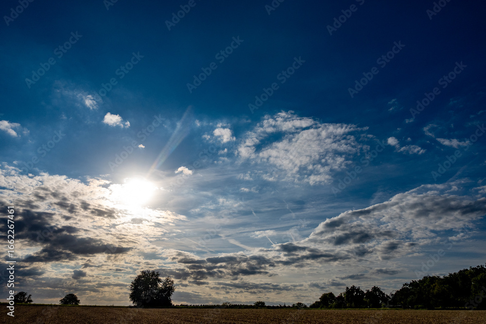 Sonnenstrahlen dringen durch die Wolken am Abend