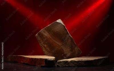 black and red podium background with natural stones