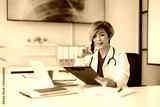Asian adult doctor medical professional consult patient healthcare using mobile device technology modern clinic hospital office work environment expert advice telehealth communication