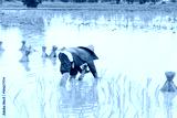 Farmers transplant rice seedlings in paddy field