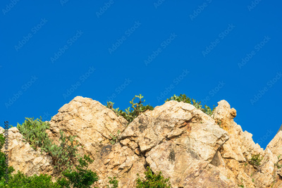 Rock cliff with beautiful clear blue sky and cactus on the mountain