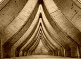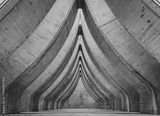 Brutalist modern concrete architecture in Zurich, Switzerland, black and white