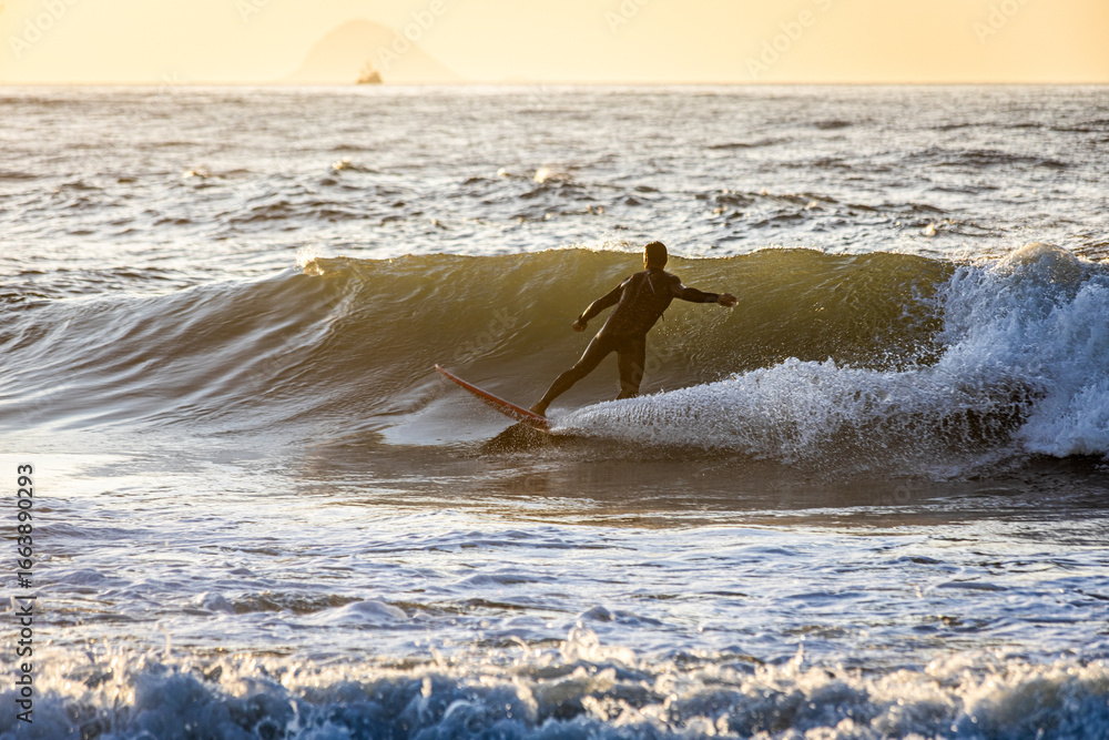 Surfer Riding Ocean Wave on Surfboard