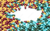 Colorful of antibiotic medicine capsule pills, drug resistance with copy space